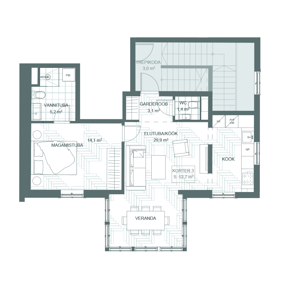 Pindala: 53.7 m², korrus: 2
