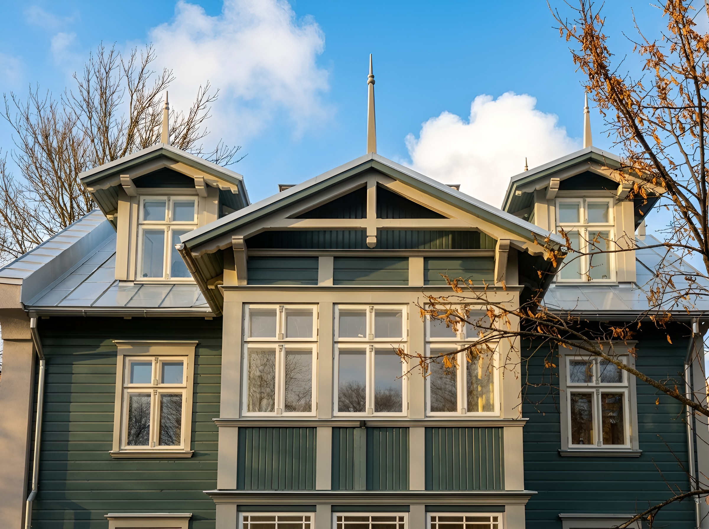 puitarhitektuuri kaasaegsete mugavustega. Dekoratiivsete soontega aknad, tuuleliistud ning linnavälistele majadele omased verandad loovad hoonele erilise ja äratuntava ilme.